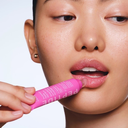 ტუჩის ღია ვარდისფერი ბალმი ე.წ. "plumping" - ტუჩის გამადიდებელი ეფექტით.